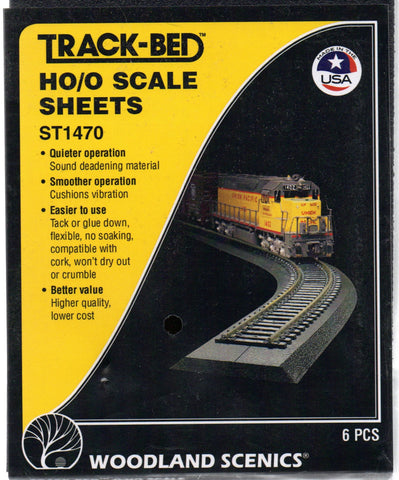 Sheets are great for railyards and sidings. They align well with cork or Homasote. Track-Bed deadens sound, requires no pre-soaking like cork, remains flexible and will not dry out or become brittle. 6 sheets/package