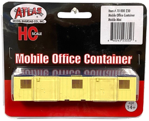 Prototypes for the Atlas HO Scale 40' Mobile Office Container fulfill the need for portable, on demand office space at construction sites, railroad yards and many other places. Companies offer purpose-built and/or converted shipping containers for rent. These containers are fitted with office interiors, entry doors, lighting as well as air conditioning and other creature comforts. They are very versatile and are seen virtually everywhere there's a need for temporary or portable office space. This model features accurate doorway, window and light fixture (nonoperating) details, including separately applied air conditioning units and electrical equipment housings and conduits, plus fine decoration.