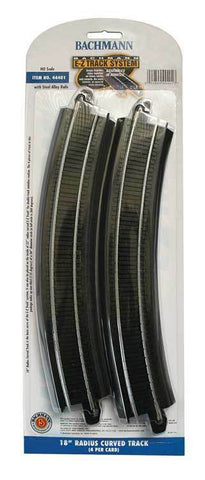 HO Scale Bachmann 44401 18" Radius Curve Steel E-Z Track (4) pcs