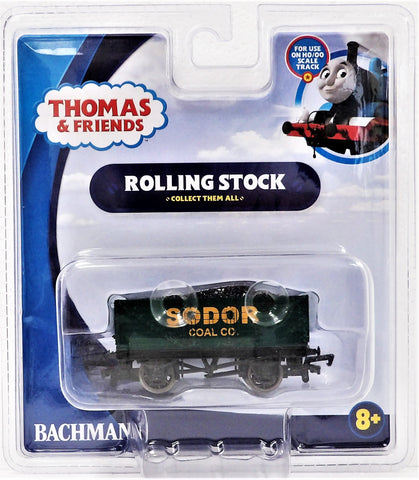 THOMAS & FRIENDS™ SODOR COAL CO. WAGON with LOAD - HO Scale. Wagons (commonly referred to as trucks) form a large group of railway goods wagons designed primarily for the transportation of bulk goods and freight. Due to their ubiquitous nature on the railway, they have been employed for transporting a variety of other materials, such as wood, sand, china clay, bricks and even debris after large storms. Bachmann carefully reproduces your favorite Thomas & Friends™ characters in HO scale. All rolling stock features realistic character faces (where applicable), highly detailed, realistic plastic body shells, all-metal wheels, and international-style hook-and-loop couplers