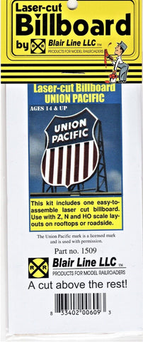 HO Scale Blair Line 1509 Union Pacific Shield Herald Laser-Cut Wood Billboard Kit