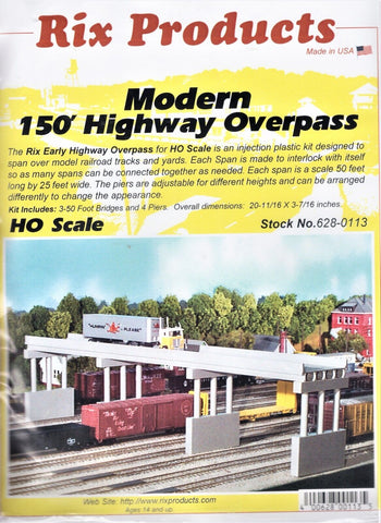 HO Scale Rix Products 628-0113 150' Modern Highway Overpass w/Four Piers Kit