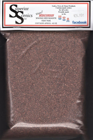 Wisconsin Wausau Red Granite is an excellent product to use in any miniature model. In addition, this product is not some imitation or a “look like” product. The granite we use comes from a quarry. We then crush and clean the stone. And finally, we sort it to varying particle sizes to meet any scale modelers may need. Because it is real granite, it won’t break down, fade, or look phony. As a result, it will look realistic, because it is real.