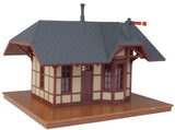 The WalthersTrainline Victoria Springs Station is a fully assembled wooden train depot based on typical railroad buildings used along railroad lines across the continent. Featuring a wood exterior, this built-up model is a perfect stop for your railroad's passenger trains. This building features parts molded in appropriate colors so there's no painting needed. A non-operating train order signal, ornate trim, eave bracket details and wooden platform give this station classic charm that's right for any steam- or diesel-era railroad.