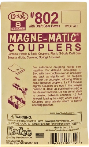 S Scale Kadee #802 Black Plastic Knuckle Coupler & Gearbox (2) pr