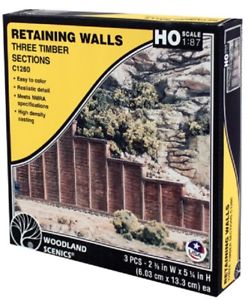 HO Scale Woodland Scenics C1260 Timber Retaining Wall (3) pcs