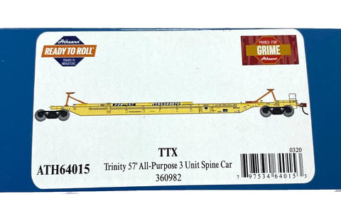 HO Scale Athearn 64015 TTX 360982 57' All Purpose 3 unit Spine Car