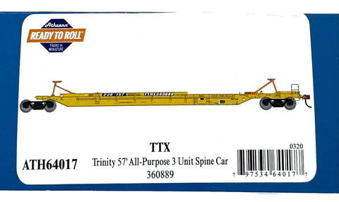 HO Scale Athearn 64017 TTX 360889 57' All Purpose 3 unit Spine Car