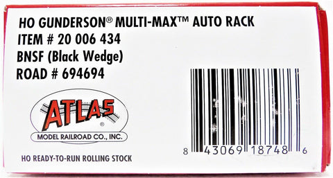 HO Scale Atlas 20006434 BNSF 6946694 Gunderson Multi-Max Auto Rack w/Black Wedge