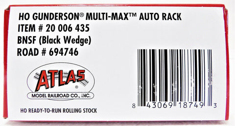 HO Scale Atlas 20006435 BNSF 694746 Gunderson Multi-Max Auto Rack w/Black Wedge