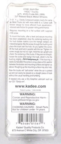 HO Scale Kadee #1561 Arch Bar Self Centering Trucks 33" Ribbed Back Wheels