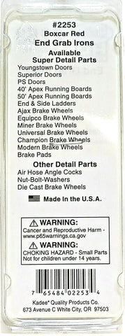 HO Scale Kadee #2253 End Grab Irons Boxcar Red Freight Car Detail Parts (4) pr