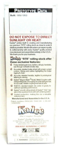 Kadee prides them selves in creating and manufacturing our premium "RTR" rolling stock as close to scale & detail as possible. Kadee "RTR" rolling stock offer these exclusive features: Finely detailed grab irons, ladders, stirrups, handrails, see-through roofwalk & brake step. Accurately detailed brake wheel with proper curved contour, ribbing and outline highlighting the brake rigging & chain. Accurate detailed heralds, legible & prototypical accurate lettering & coloring. Kadee Magne-Matic "Scale" Metal Couplers with delayed centering action & scale draft gear box for accurate, reliable coupling that lasts & lasts. Patent numbers 5,316,158 & 5,785,192. NMRA standard weight, low center of gravity for optimum operating performance. Kadee smooth rolling wheels & trucks with self-centering action. Patent numbers 5,090,332 5,768,999 & 5,832,837. This is a limited production car, making this car a valuable collectors item. For collector purposes, keep model factory sealed. Otherwise Enjoy your Award winning "RTR" cars today on any HO Scale layout.