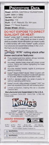 Kadee prides them selves in creating and manufacturing our premium "RTR" rolling stock as close to scale & detail as possible. Kadee "RTR" rolling stock offer these exclusive features: Finely detailed grab irons, ladders, stirrups, handrails, see-through roofwalk & brake step. Accurately detailed brake wheel with proper curved contour, ribbing and outline highlighting the brake rigging & chain. Accurate detailed heralds, legible & prototypical accurate lettering & coloring. Kadee Magne-Matic "Scale" Metal Couplers with delayed centering action & scale draft gear box for accurate, reliable coupling that lasts & lasts. Patent numbers 5,316,158 & 5,785,192. NMRA standard weight, low center of gravity for optimum operating performance. Kadee smooth rolling wheels & trucks with self-centering action. Patent numbers 5,090,332 5,768,999 & 5,832,837. This is a limited production car, making this car a valuable collectors item. For collector purposes, keep model factory sealed. Otherwise Enjoy your Award winning "RTR" cars today on any HO Scale layout.