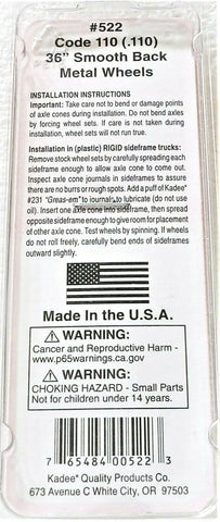 HO Scale Kadee #522 36" Diameter Smooth Back Metal Code 110 Wheels (12) pcs