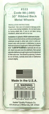 HO Scale Kadee #533 33" Diameter Ribbed Back Metal Code 88 Semi-Scale Wheels