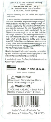 HO Scale Kadee #555 ASF 100-ton Roller Bearing Self Centering Trucks w/36" Smooth Back Wheels