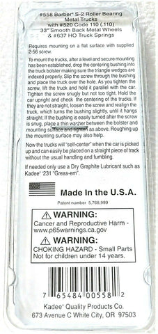 HO Scale Kadee #558 Barber S-2 70-Ton Roller Bearing Self Centering Trucks w/33" Smooth Back Wheels