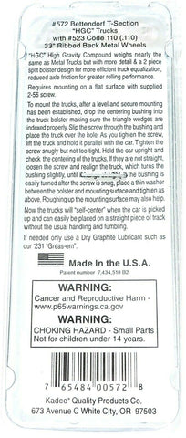 HO Scale Kadee #572 Bettendorf T-Section Self Centering Trucks w/33" Ribbed Back Wheels