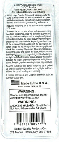 HO Scale Kadee #573 Vulcan Double Truss Self Centering Trucks w/33" Ribbed Back Wheels