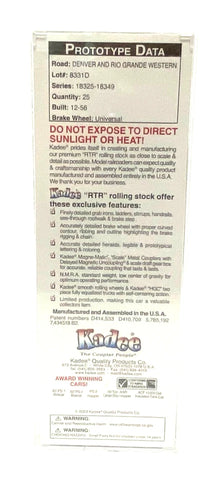 Kadee prides them selves in creating and manufacturing our premium "RTR" rolling stock as close to scale & detail as possible. Kadee "RTR" rolling stock offer these exclusive features: Finely detailed grab irons, ladders, stirrups, handrails, see-through roofwalk & brake step. Accurately detailed brake wheel with proper curved contour, ribbing and outline highlighting the brake rigging & chain. Accurate detailed heralds, legible & prototypical accurate lettering & coloring. Kadee Magne-Matic "Scale" Metal Couplers with delayed centering action & scale draft gear box for accurate, reliable coupling that lasts & lasts. Patent numbers 5,316,158 & 5,785,192. NMRA standard weight, low center of gravity for optimum operating performance. Kadee smooth rolling wheels & trucks with self-centering action. Patent numbers 5,090,332 5,768,999 & 5,832,837. This is a limited production car, making this car a valuable collectors item. For collector purposes, keep model factory sealed. Otherwise Enjoy your Award winning "RTR" cars today on any HO Scale layout.