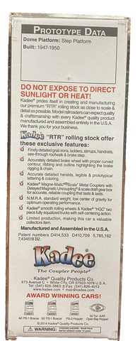 Kadee pride Themselves in creating and manufacturing our premium "RTR" rolling stock as close to scale & detail as possible. Kadee "RTR" rolling stock offer these exclusive features: Finely detailed grab irons, ladders, stirrups, handrails, see-through platform. Accurately detailed brake wheel with proper curved contour, ribbing and outline highlighting the brake rigging & chain. Accurate detailed heralds, legible & prototypical accurate lettering & coloring. Kadee® Magne-Matic® "Scale" Metal Couplers with delayed centering action & scale draft gear box for accurate, reliable coupling that lasts & lasts. Patent numbers 5,316,158 & 5,785,192. NMRA standard weight, low center of gravity for optimum operating performance. Kadee smooth rolling wheels & trucks with self-centering action. Patent numbers 5,090,332 5,768,999 & 5,832,837. This is a limited production car, making this car a valuable collectors item. For collector purposes, keep model factory sealed. Otherwise Enjoy your Award winning "RTR" cars today on any HO Scale layout.
