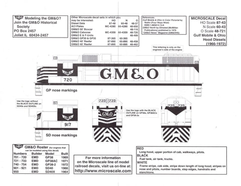 HO Scale Microscale 87-43 Gulf Mobile & Ohio GM&O Hood & Cab Diesels Decal Set
