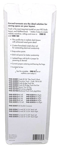 HO Scale Walthers 948-83067 Code 83 Left Hand 24 and 36" Radi Curved Turnout