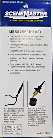 The SceneMaster HO Scale Modern Wall-Mount Lights are based on a typical North American building lights. Present in many cities across the continent, this building light will illuminate your layout scenes. Easy-to-install prewired leads. Metal and plastic construction means Modern Wall-Mount Lights will stand up to regular layout use.