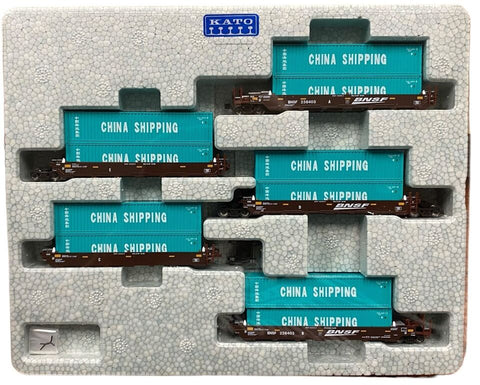 N Kato 106-6210 BNSF Gunderson MAXI-1 5-Unit Well Car w/China Shipping Container