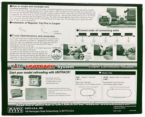 Provides stable operation with or without container loads due to Kato’s new innovative heavier material steel compound plastic used for the construction of the well cars.