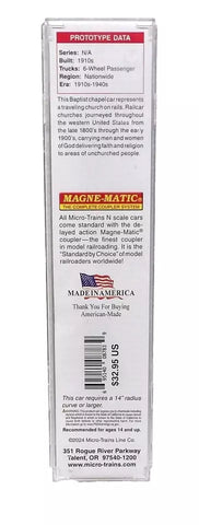 N Micro Trains 14400301 Baptist Church Pullman Heavyweight 3-2 Observation Car