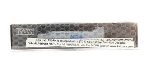 This detailed Kato N Scale EMD F40PH is based on diesels which became synonymous with Amtrak and many commuter railroads. Although in 2024 the F40PH has been retired from Amtrak service, it operated for decades on Amtrak trains and on many commuter railroads such as VRE, MBTA, Caltrain, GO Transit, Metrolink and Metra. Over 500 F40PH locomotives were manufactured by EMD in various configurations. To support passenger service, the F40PH is equipped with a secondary electrical generator referred to as the head end generator (or HEP, for Head End Power). The need for constant frequency power means that these HEP units are constantly running at 900rpm, resulting in the nickname "Screamers" for the units due to the sound. The models have directional headlights and roadname-appropriate ditch lights and rear markers on commuter versions. The models feature Kato magnetic knuckle couplers, a five-pole motor with dual brass flywheels for smooth operation, blackened metal wheels, all-wheel electrical pickup and a factory-installed DCC decoder for realistic control on DCC layouts.