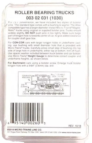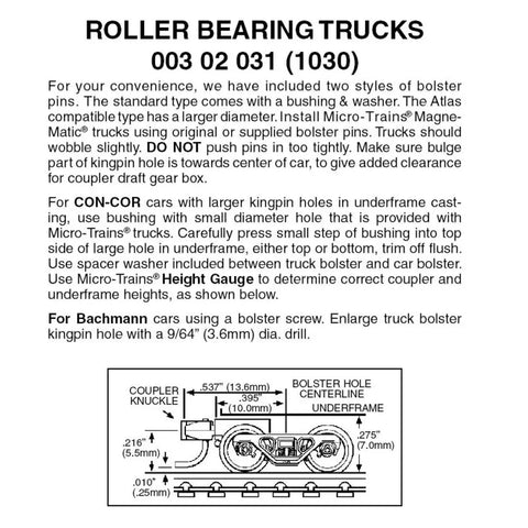 N Scale Micro Trains 302031 Roller-Bearing Trucks With Short Couplers 1 Pair