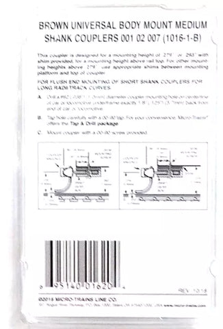 N Scale Micro Trains 102007 Brawn Assembled Body Mount Medium Shank Coupler