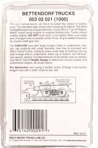 N Scale Micro Trains 302021 Bettendorf Trucks w/Assemble Short Couplers (1) Pair