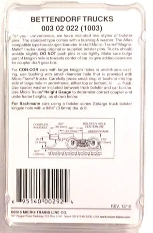 N Scale Micro Trains 302022 Bettendorf Trucks w/Assemble Medium Couplers (1)Pair