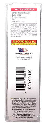 This ready-to-run N Scale 50' Combination Plug and Sliding Door Boxcar from Micro-Trains(R) is based on cars built beginning from the 1940s into the 1960s and used into the early 2000s. Combination-door boxcars allowed easier access during loading with forklifts. Models include free-rolling Delrin(R) trucks with contoured axles, truck-mounted Magne-Matic(R) couplers and diecast metal underframes or interior weights. Cars also include thin-profile foot stirrups, brake wheels and fine decoration.