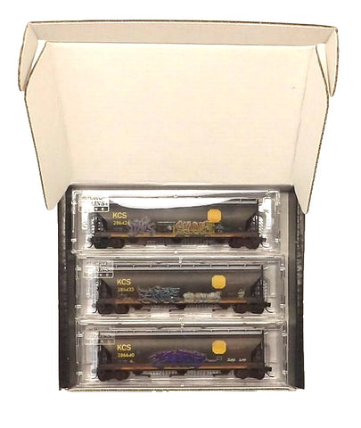 N Scale Micro Trains 983 05 097 Weathered Kansas City Southern KCS 3-Bay Covered Hopper 3-Pack