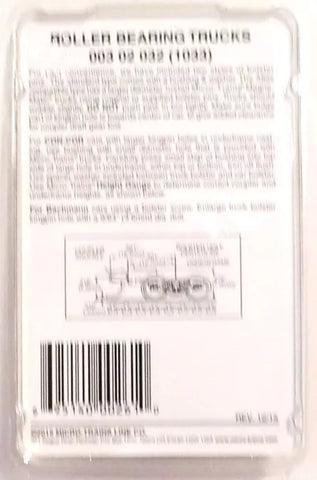Micro-Trains(R) trucks feature detailed side frames molded in durable engineering plastic. Trucks are available complete with couplers in various lengths or without couplers.