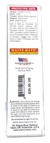 Share N Scale Micro Trains 110 00 611 Canadian Pacific CP 415635 56' Tank Car
